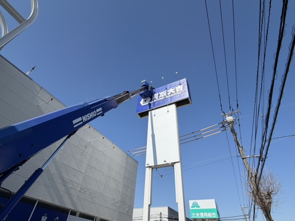 先日は、看板灯の交換作業を行いました。